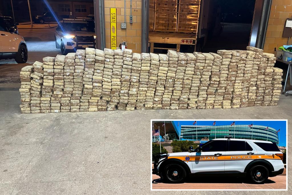 تُظهر صورة المصادرة التي شاركتها الشرطة كومة ضخمة من الطوب المعبأ بشكل فردي من المادة غير المشروعة.