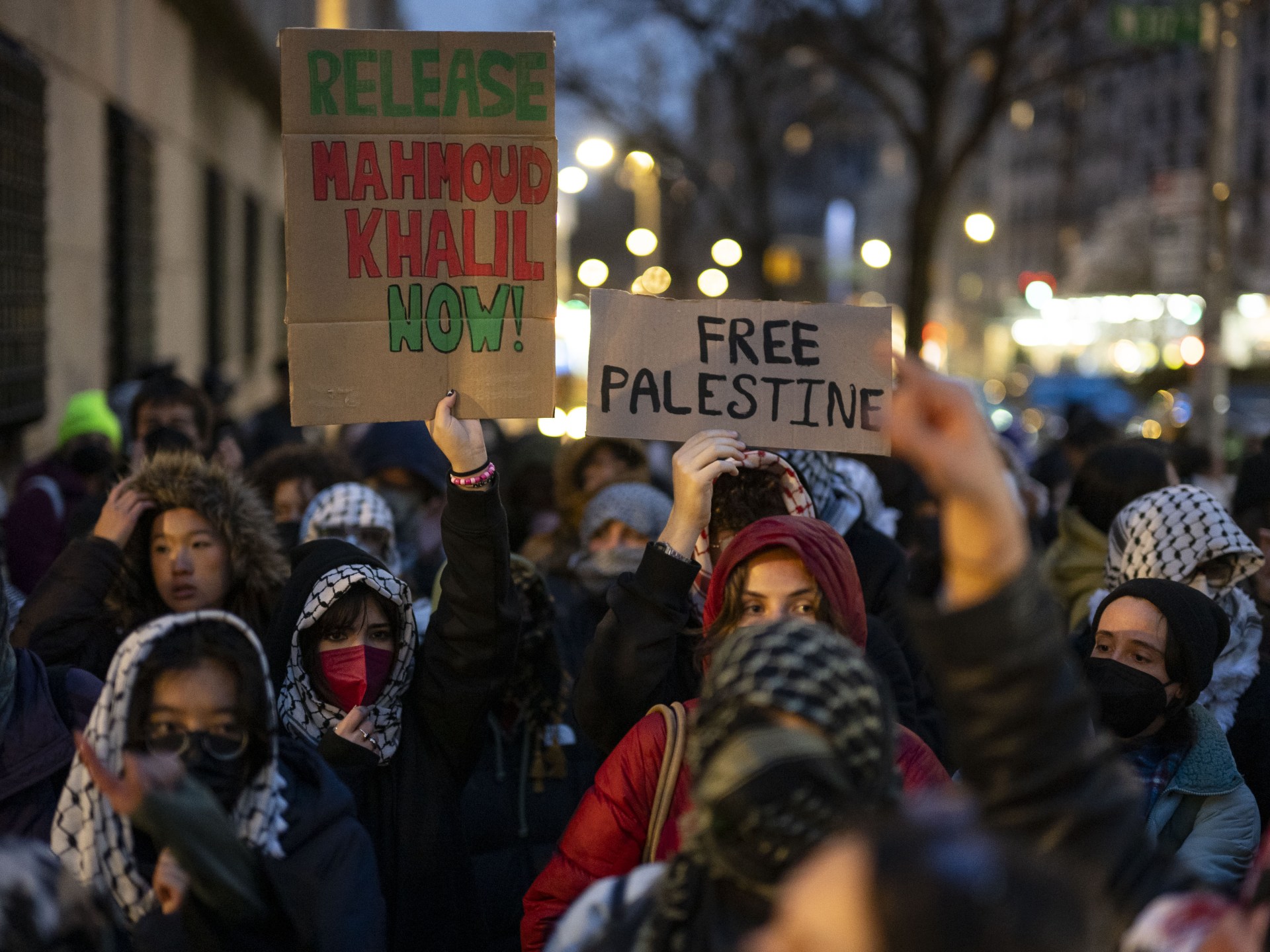 وفي 9 مارس/آذار الماضي، اعتقلت السلطات الأميركية الناشط الفلسطيني محمود خليل الذي قاد احتجاجات تضامنية بجامعة كولومبيا العام الماضي تنديدا بالإبادة الجماعية التي ترتكبها إسرائيل في غزة.