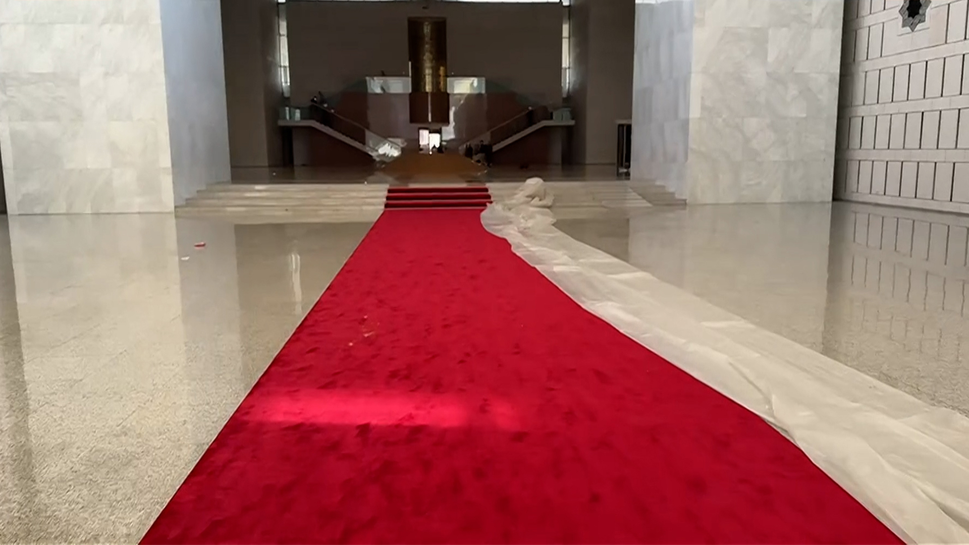 جالت كاميرا قناة الجزيرة داخل قصر الشعب في دمشق، بعد إعلان المعارضة السورية المسلحة سقوط نظام الرئيس السوري بشار الأسد.