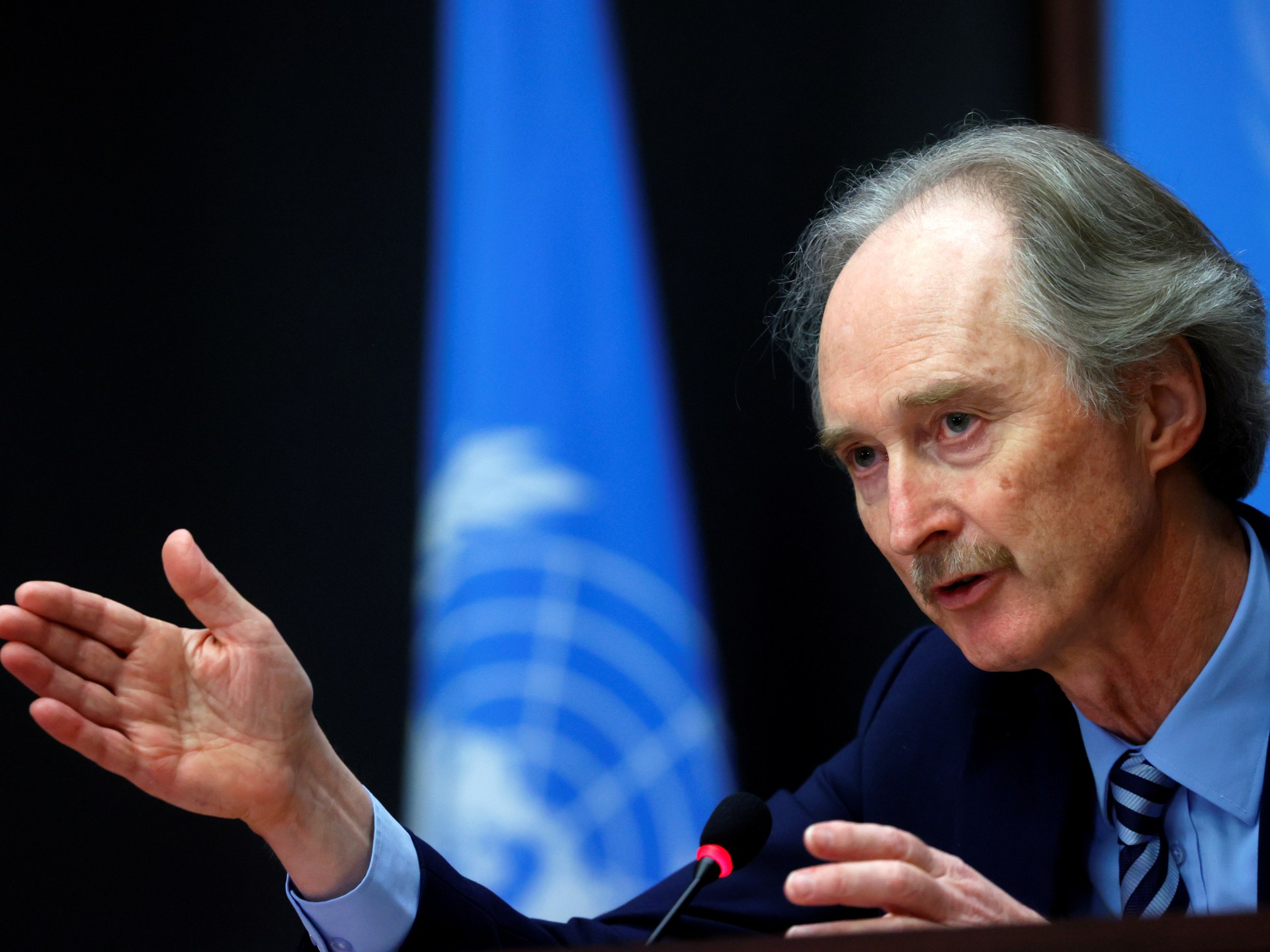 وشدد المبعوث الأممي على ضرورة محاسبة المسؤولين عن التحريض على العنف وقتل المدنيين، داعيا لاحترام سيادة سوريا بشكل كامل.