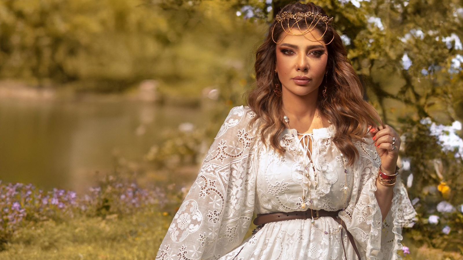 وظهرت في البوستر بإطلالة فرعونية مبهرة، ارتدت خلالها زيًا أسود أنيقًا مزينًا بتفاصيل ذهبية فاخرة، مع تاج ملكي ضخم يحمل رمز «العين»، ما أضفى على ملامحها طابعًا مهيبًا ومميزًا مستوحى من روح الحضارة المصرية القديمة.