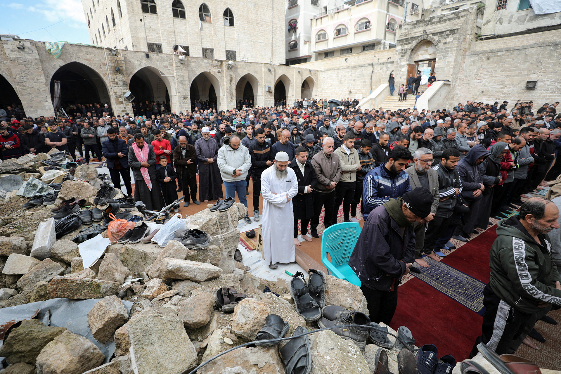 وتكرر هذا المشهد في أنحاء مختلفة من قطاع غزة، حيث أدى الفلسطينيون صلاتهم على أنقاض المساجد والمنازل المدمرة.