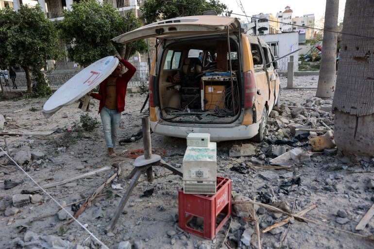 سيارة تابعة لوسيلة إعلام تضررت من القصف (الفرنسية)