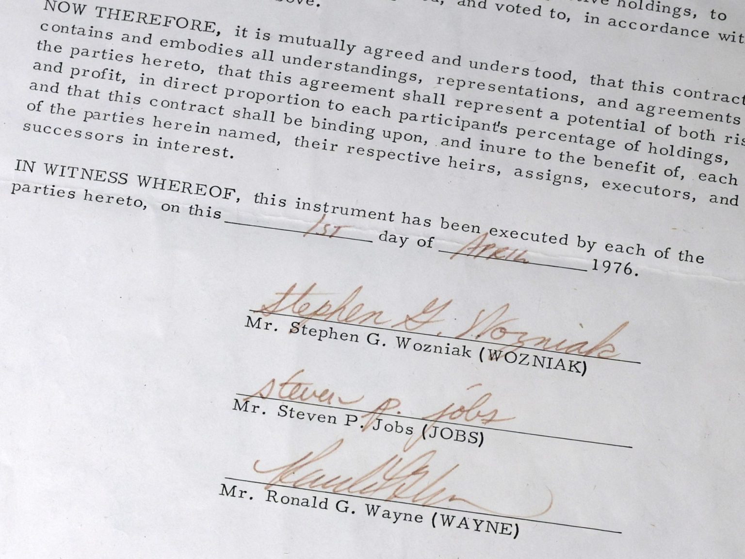 لم تدم شراكة واين مع جوبز ووزنياك طويلًا، حيث قرر بيع حصته في الشركة بعد 12 يومًا فقط من التأسيس. تم تسجيل هذا التعديل على العقد الأصلي، مما يجعله وثيقة فريدة من نوعها تسجل لحظة حاسمة في تاريخ “آبل”.