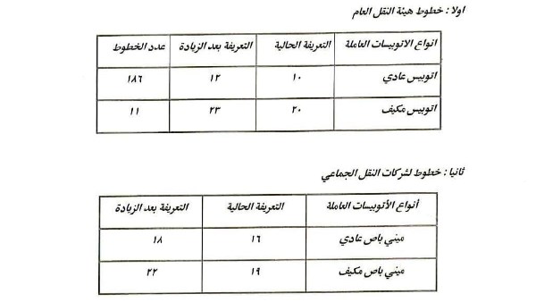 أتوبيس عادي ١٢ جنيها بدلا ١٠ جنيهات.