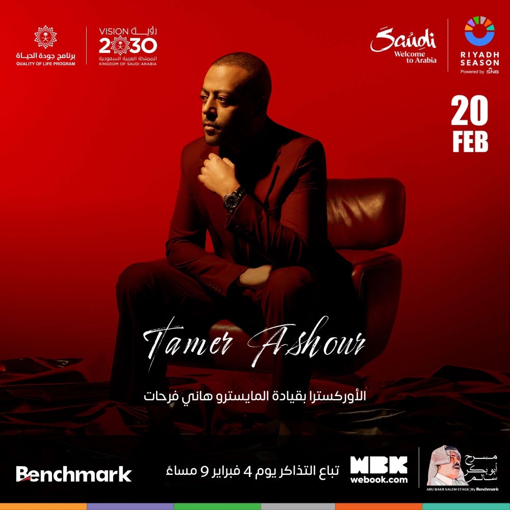 وقال الحساب “بنغني كلمات وصفت مشاعرنا في أصعب الأوقات، وأجمل اللحظات مع الفنان تامر عاشور”، ودعا الحساب الجمهور لحضور الحفل: “أهل الرياض الغاليين نشوفكم يوم 20 فبراير”.