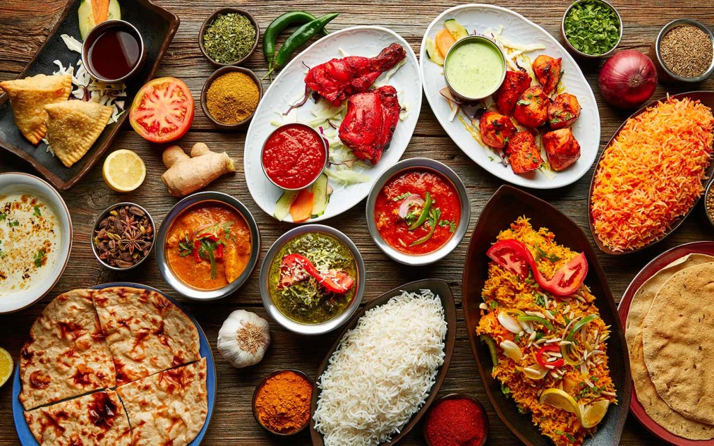 - الأطباق الرئيسية: الكاري المطهو ببطء، البقوليات، واللحوم المشوية على الفحم تعكس براعة الطهي الهندي.