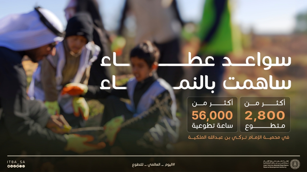 الهيئة الملكية لمحمية الإمام تركي بن عبدالله الملكية سجلت منذ انطلاقها تقدمًا ملحوظًا في مجال العمل التطوعي، وبلغ عدد المتطوعين الإجمالي منذ بداية الهيئة وحتى اليوم 2,827 متطوعًا، قدموا 56,140 ساعة تطوعية في أنشطة ومبادرات متنوعة شملت حماية الحياة الفطرية، وزيادة الغطاء النباتي، وتنظيم الفعاليات البيئية والتوعوية.