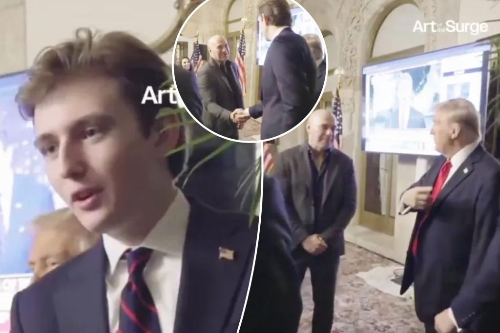 انتشر مقطع فيديو للرئيس المنتخب دونالد ترامب وابنه بارون، وهما يتحدثان إلى دانا وايت مؤسس UFC، الأربعاء، حيث لاحظ مستخدمو وسائل التواصل الاجتماعي أن هذه هي المرة الأولى التي يسمعون فيها صوت الشاب البالغ من العمر 18 عامًا.