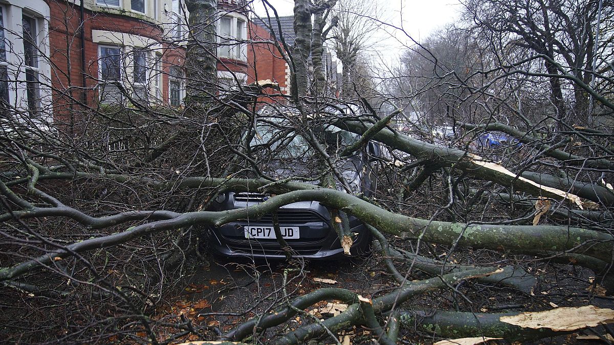 وفي شمال غرب إنجلترا، توفي رجل في الأربعينيات من عمره عندما سقطت شجرة على شاحنته بينما كان يقود سيارته على طريق سريع بالقرب من بريستون، على بعد حوالي 58 كيلومترا شمال مانشستر.