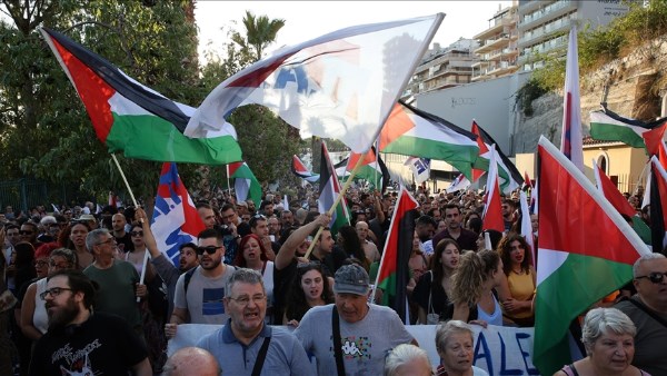 وجرت المظاهرة أمس في ميناء أرغوستولي بجزيرة كيفالونيا، عقب وصول سفينة سياحية تقل نحو 1500 سائح إسرائيلي.