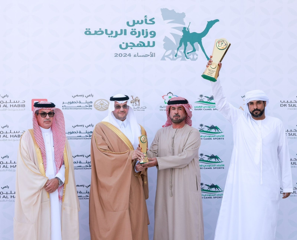 تحت رعاية صاحب السمو الملكي الأمير سعود بن نايف بن عبدالعزيز أمير المنطقة الشرقية، توَّج صاحب السمو الملكي الأمير سعود بن طلال بن بدر محافظ الأحساء ، اليوم ” الخميس ” ، بميدان السيح الفائزين بالمراكز الأولى من منافسات كأس وزارة الرياضة للهجن 2024، وذلك على أرض ميدان السيح للهجن بمحافظة الأحساء ، بحضور نائب رئيس الاتحاد السعودي للهجن محمد البلوي، وعدد من المسؤولين .