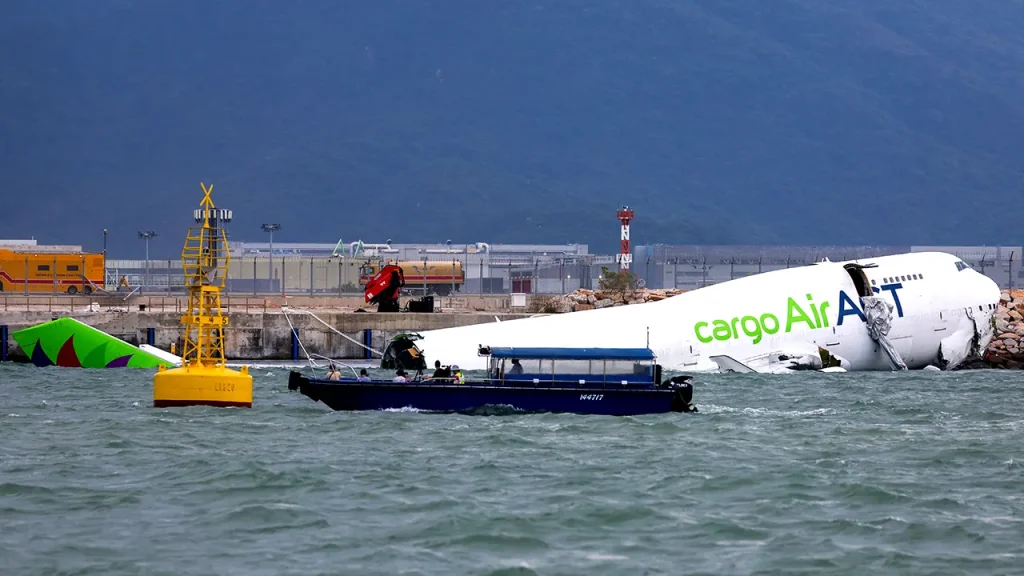 وانتهى الأمر بطائرة بوينغ 737 – في أسوأ كارثة مطار في هونغ كونغ منذ عقود – مغمورة جزئيا بالمياه، على الرغم من أن جميع أفراد الطاقم الأربعة الذين كانوا على متنها تمكنوا من الفرار دون أن يصابوا بأذى.