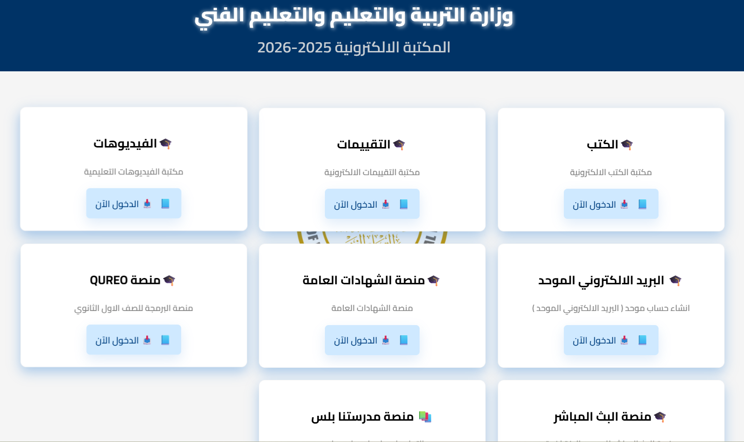 ويمكن الآن لطلاب جميع الصفوف الدراسية تحميل تقييمات وزارة التربية والتعليم من المكتبة الالكترونية 2025 – 2026 بموقع وزارة التربية والتعليم  من خلال اتباع الخطوات التالية :