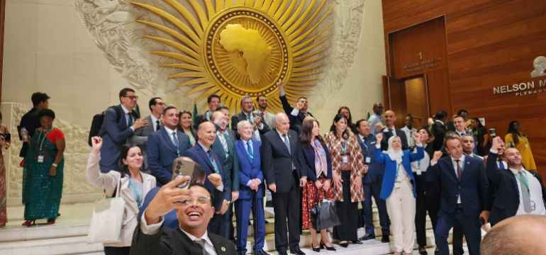 وأثناء انعقاد جلسة يوم الجمعة حول موضوع “العدالة من أجل الأفارقة والمنحدرين من أصول أفريقية عن طريق التعويضات”، كان ضمن برنامج الجلسة فقرة تبادل خلالها الحضور التحية بمناسبة إطلاق الاتحاد عام التعويضات في 2025، ليبادر كل شخص إلى مصافحة من يجلسون بجواره، وهو يردد عبارة “تحيا أفريقيا”.