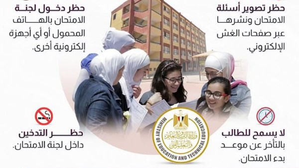 وحظر تصوير أسئلة الامتحان ونشرها عبر صفحات الغش الإلكتروني وحظر دخول لجنة الامتحان بالهاتف المحمول أو أي أجهزة إلكترونية أخرى .