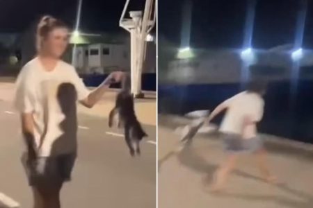 تحذير: صور محزنة تم تصوير امرأة تتأرجح هريرة ميتة من ذيلها قبل إلقاء جسدها في ميناء. وقع الحادث المؤلم في…