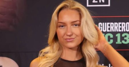 سيدني توماس, المعروفة أيضًا باسم “Viral Ring Girl” بعد أن تم تسليط الضوء عليها بعد ظهورها في مباراة جيك بول…