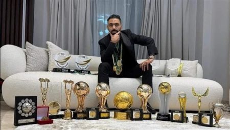 استعرض حسين الشحات لاعب الفريق الأول لكرة القدم بالنادي الأهلي جوائزه الفردية بعد حصوله على جائزة أفضل جناح المقدمة خلال…