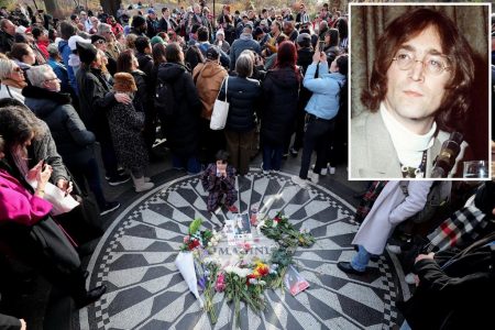 اجتمع المعجبون المخلصون لموسيقي البيتلز الأسطوري جون لينون في ستروبيري فيلدز في سنترال بارك يوم الأحد للرقص والغناء وتذكر الموت…
