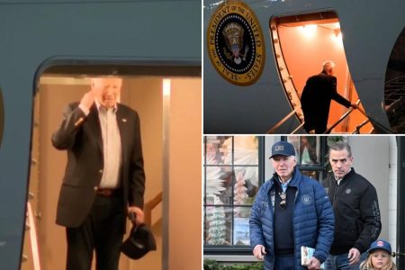 واشنطن – حيا الرئيس بايدن المتفرجين ليلة الأحد من أعلى درجات طائرة الرئاسة أثناء ظهوره العلني لأول مرة منذ العفو…